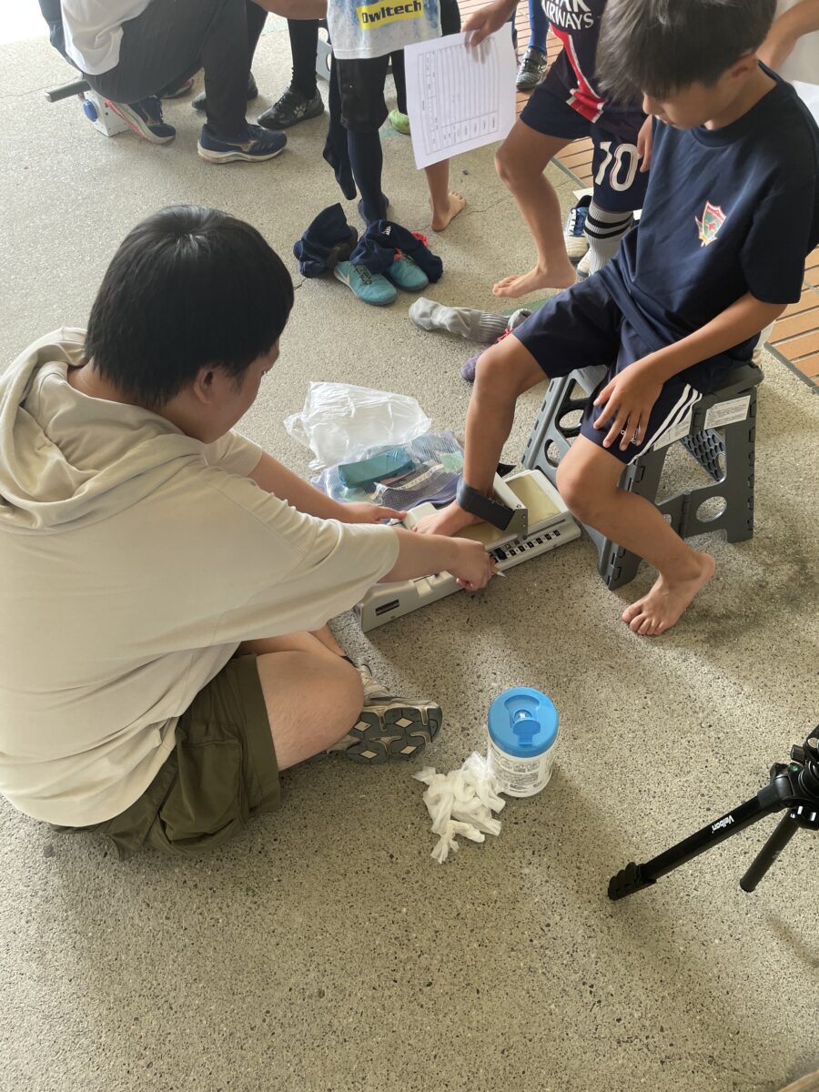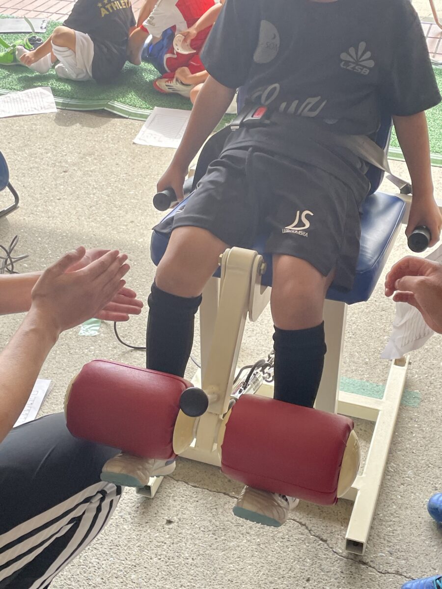 当日は、U8・U10の選手たちが参加し、バランステストや下肢筋力、股関節の筋力などを測定しました。