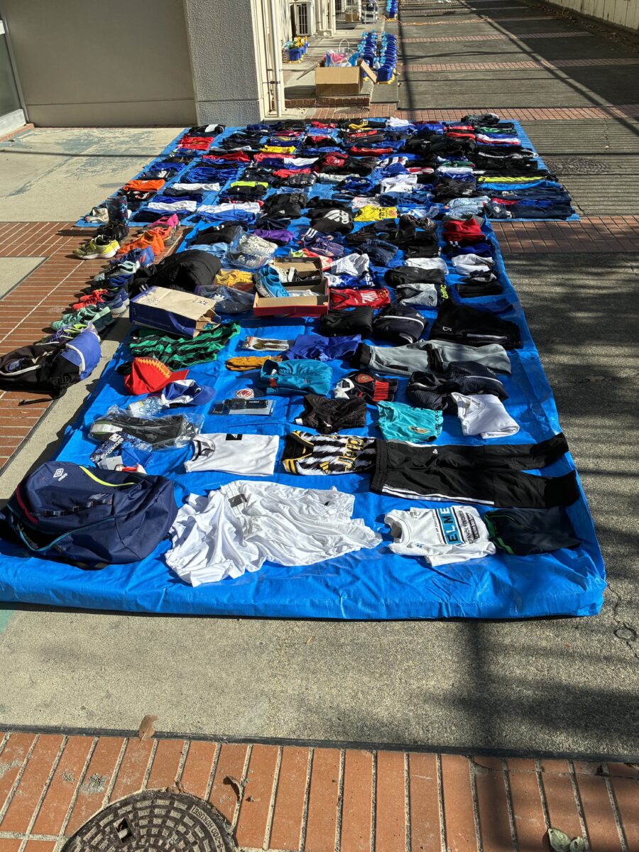 サイズアウトした練習着やシューズ、バッグなど、100点以上の寄付が集まり、SDGsの取り組みとして有効活用し、希望者へ無料で配布しました。